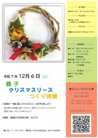 親子でクリスマスリースづくり体験 ☆あと2枠空きが出ました!☆